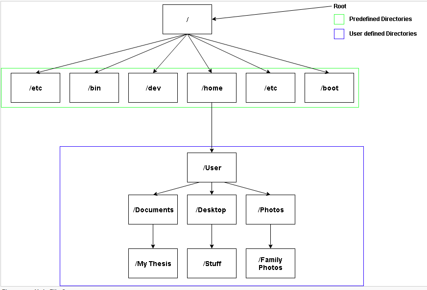 - 유닉스 파일 시스템은 하나의 루트 디렉토리가 있습니다.