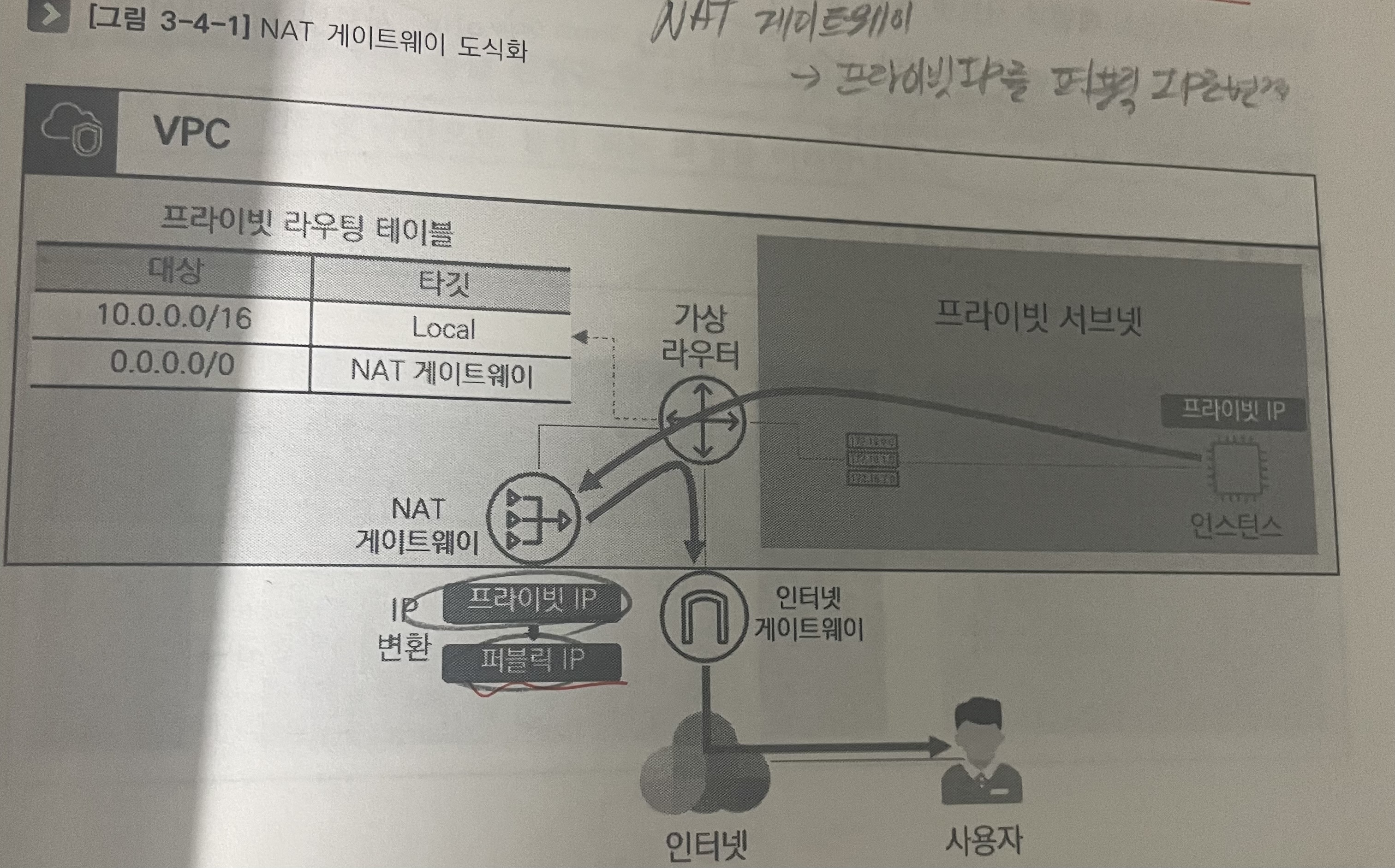 - 인터넷 게이트웨이와 다른 점은 프라이빗 서브넷을 외부 인터넷 구간과 연결시깁니다.